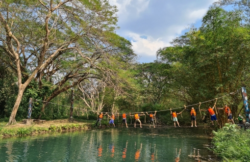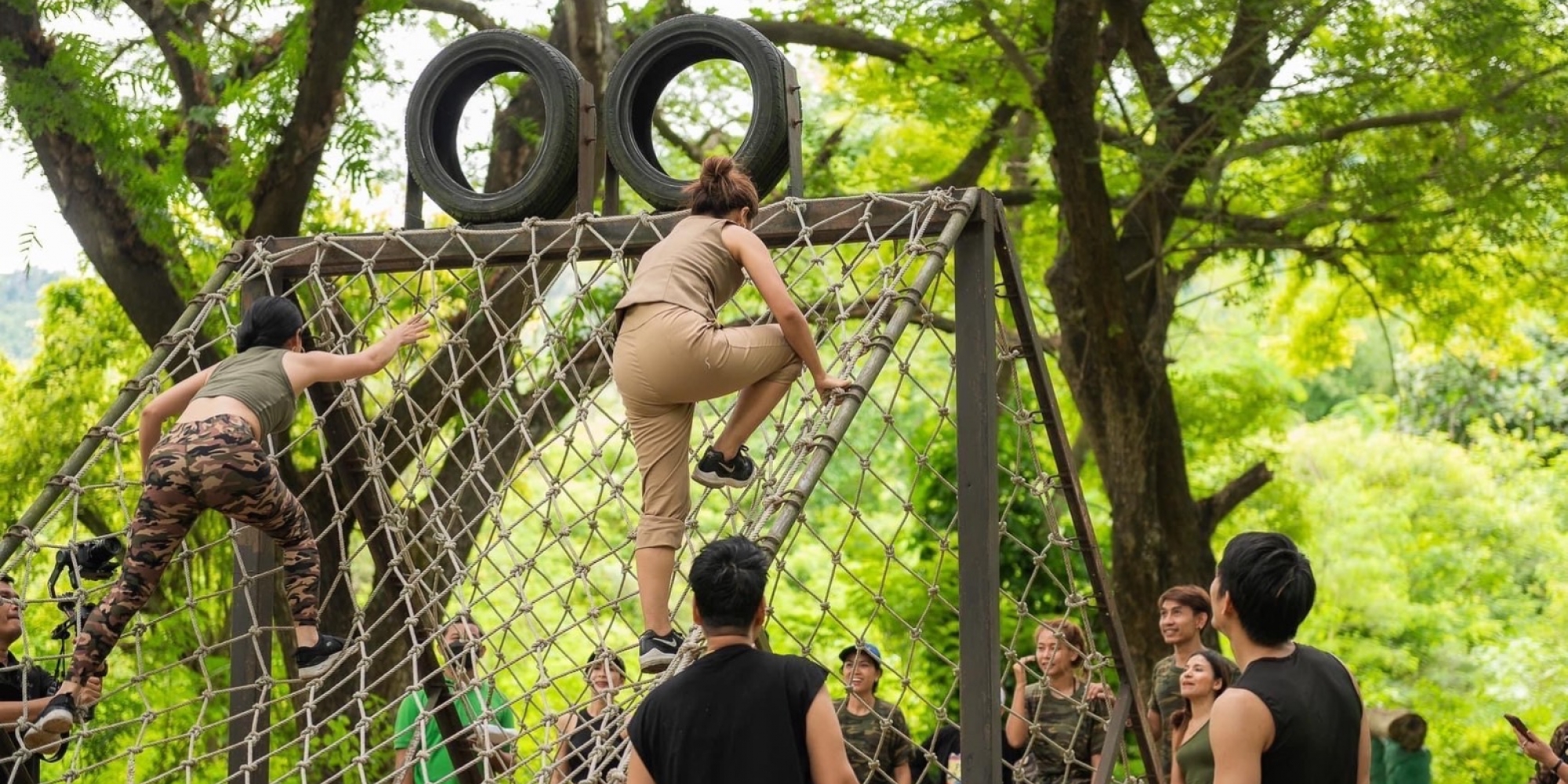 集团徒步活动的20多个野营,如攀爬架、蜘蛛网、飞狐缆车等户外活动。每一野营的娱乐设备都符合安全标准,配备齐全。每个游乐项目都有专人照看。