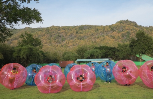 游客穿上泡泡装,玩法很简单,互相撞倒,也可以翻筋斗。采用足球游戏规则或相扑规则会更加爽快。