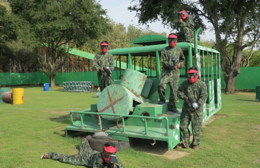 对不同距离的目标,用彩弹枪射击,试试游客射击的精确度。
